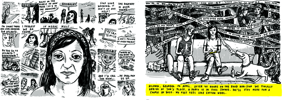 A trip to America 1991 forms the autobiographical core of "North Pole", Edda Strobl skeched the first, still quite autobiographical, version in 2007. From there Helmut Kaplan and Edda Strobl followed a complex procedure to develop the story. After four years, they have finally got some pages of dashes and letters, all of them conveying both their signatures. website of the authors: